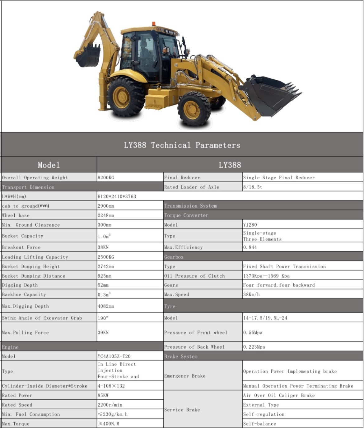 Backhoe brand new good quality Yunnei engine bucket dumping height 2.7 meters lift capacity 2.5 tons max digging depth 4 meters