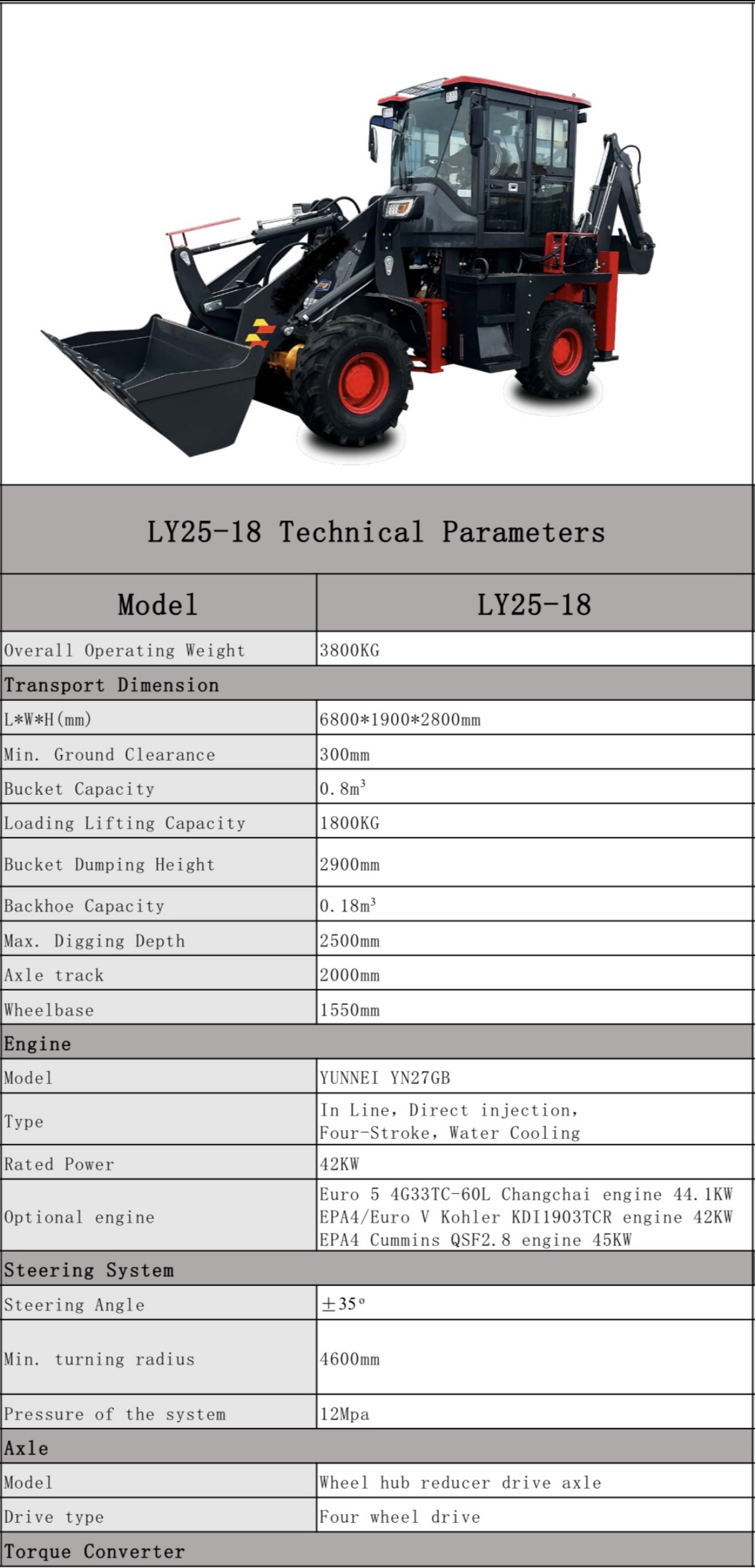 Backhoe brand new Yunnei engine 4 wheel drive bucket dumping height 2.9 meters