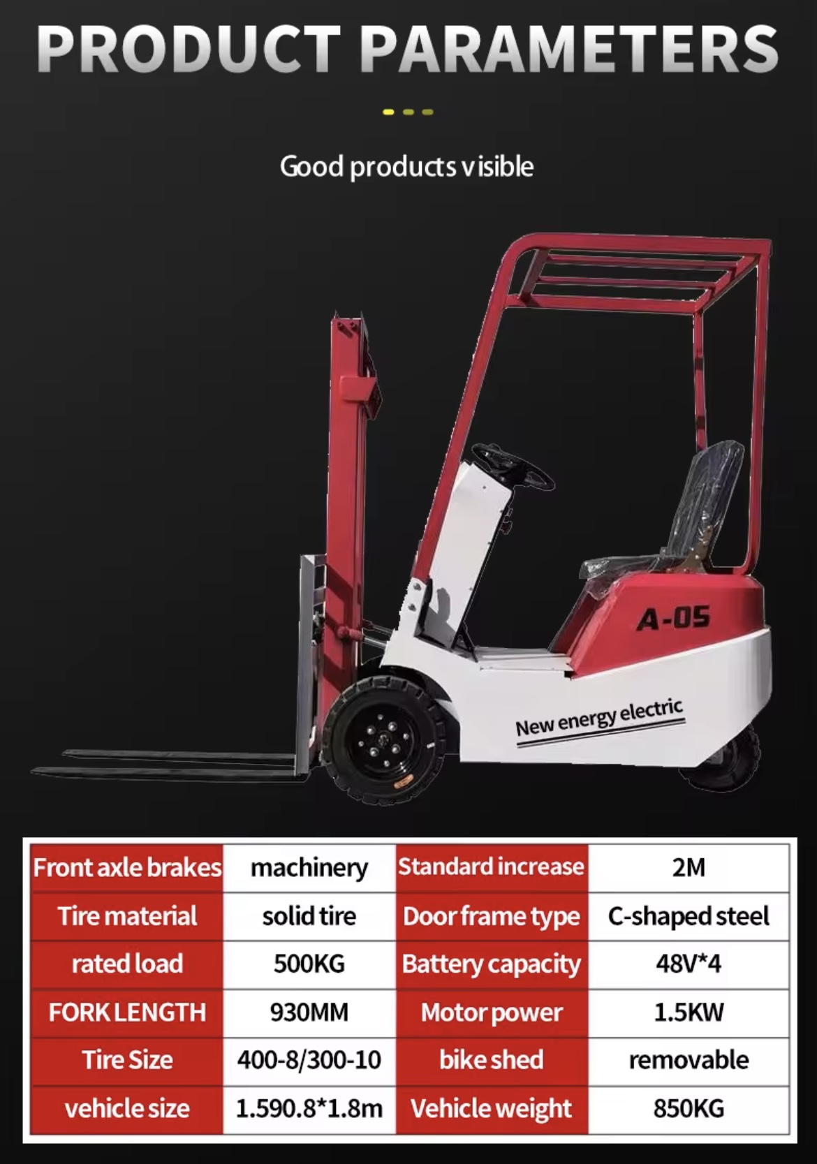Small 3 Wheel Electric Handling Forklift 0.5 Ton 1.5 Ton 2.5